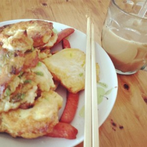 最后把剩下的蛋液和火腿一起煎一下就可以开动了~搭配一杯牛奶或奶茶营养美味又简单的早餐~