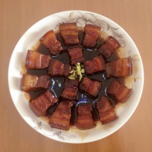 冰糖一块。调料以没过肉为佳;若不足,则各调料按比例掺水与料酒加入