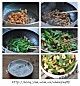 操作阶段 1、锅中放适量油,鸡丁如果拌炒 2、鸡肉变色,撒上干辣椒拌炒 3、放荷兰豆