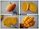 2、把芒果一分成二半,看右侧的芒果已经露出核了。
