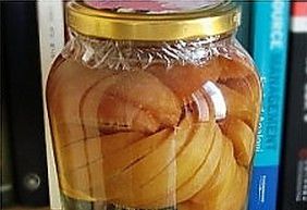 苹果醋开封后,用干净的筷子将苹果片夹出,放入保鲜袋储存在冷冻室。