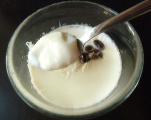 要慢慢倒,奶皮才会稳妥地躺在碗底。留少许牛奶滋润碗里的奶皮。