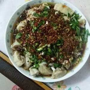 把酱料调好,锅里热油放花椒,冲进酱料碗,剩点油锅里炒一下姜,蒜,葱,放进盘里,(如上图)
