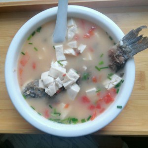 待汤色乳白即可,汤汁是否收净随意。撒入葱花,装盆。