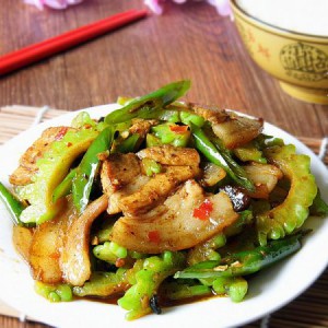 将苦瓜片倒入锅里翻炒均匀,视需要调盐即可。