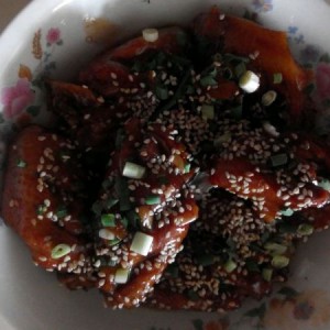 首先把中翅划口子,尽量深一点,方便入味加酱油,盐腌制