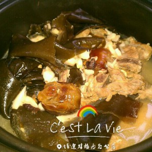 百合、海带提前泡洗干净,排骨飞水备用,蜜枣切开