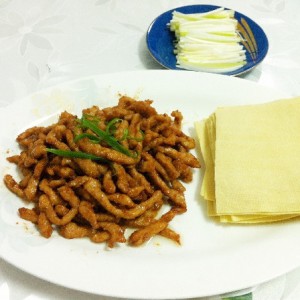 锅中留少量油,放入甜面酱的白糖炒出糖色,最后放入肉丝翻炒起锅。