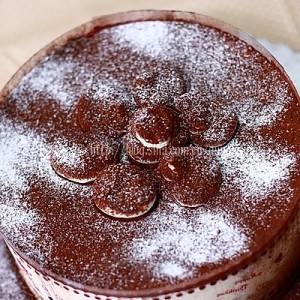 吃之前取出,脱模,撒一层可可粉,可可粉一定要高质量的,我用的法芙娜的可可粉。