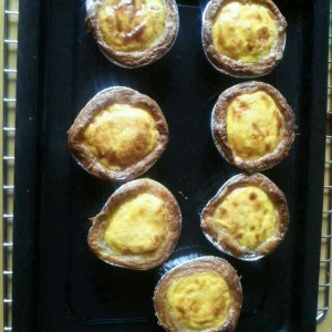 将调好的蛋液与奶液搅拌后倒入原准备好的蛋挞皮内,注意只要8分满就可,不然哄烤会容易溢出到蛋皮外面。