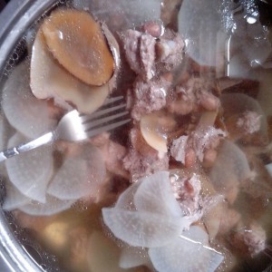 半个小时后闻到香味,放盐和调料就差不多好了,