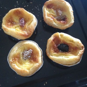3:准备蛋挞皮把液倒里面,放入预热好的烤箱里,150度左右20-25分钟上下。