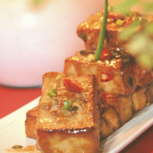 在煎好的豆腐中加入酱汁焖煮10分钟,用玉米淀粉芶芡即可出锅了~