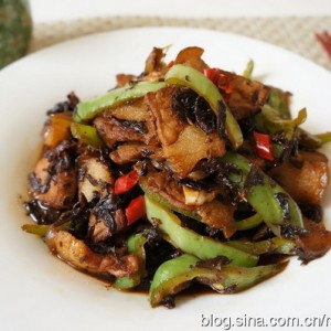 加入肉片同炒,加一勺生抽,少许水,炒熟即可。不用再放盐了,因为霉干菜本身的味道挺咸。肉片肥而不腻,很香!