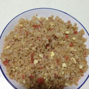 锅内倒油,热了放进鸡蛋打散,熟之后盛出来。再倒油,放入洋葱丁火腿丁,炒出香味放入拌好的米饭,翻炒后倒入鸡蛋即可。