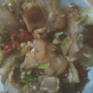 取出猪蹄,凉了之后,入锅,热锅冷油小火炸至皮脆状态,取出,锅中留少许油。