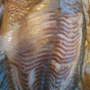 将鱼合上在鱼的正面在涂抹上剩下的配菜!
