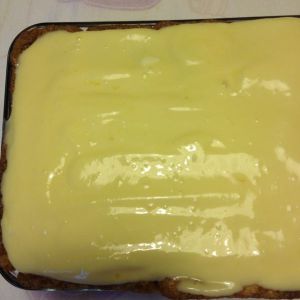 将饼干发入准备好的咖啡里浸下,将容器底和壁的四面铺实。将之前打好的蛋清奶油铺在咖啡饼干上,涂完后,在上面一层盖上咖啡饼干。再在饼干上涂上蛋黄奶油。