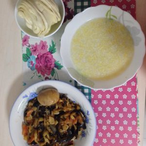 成品!哈哈,这是晚饭。卤蛋是那次朋友来家里做卤肉饭剩下的,大家都说好,下次再介绍。