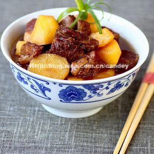 锅内加底油烧热,放入牛肉炒去表面的水分,然后加入清汤和调料,用旺火烧开,撇去浮沫,转用小火,烧至八成烂时,再放入土豆块继续炖,烧至土豆入味并酥烂时,盛入汤碗内即好。