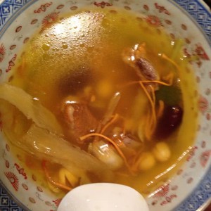 排骨飞水后加入虫草花等大火煮沸小火慢炖一小时后可以品尝了。啊那个香