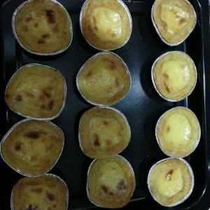 秤好的吉士粉,砂糖,低筋面粉拌匀,倒入稀奶油和牛奶的混合物中,小火把糖融化。