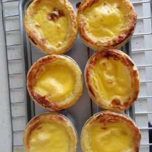 将蛋挞液倒入挞皮中,七分满,上烤箱烤制即可。