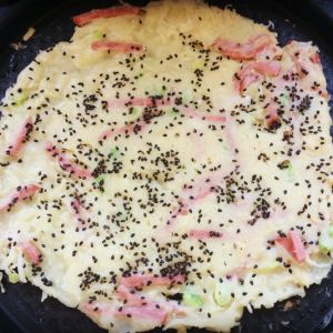 放入盆中 打入鸡蛋 放盐 淀粉 面粉