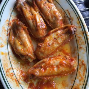 第二天把鸡翅放入预热好的烤箱,上下火烤30分钟。(烤到15分钟时把鸡翅翻面,烤到25分钟时在鸡翅表面刷一层蜂蜜水)