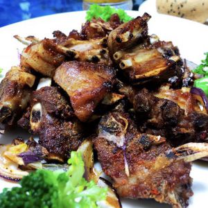 嫩羊排一斤 化开洗干净,把大喜大烤肉酱和羊排充分拌匀,放置20分钟。