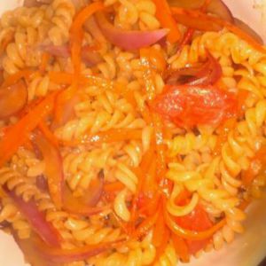 将胡萝卜,洋葱切丝,西红柿切块。油热后依次放入洋葱胡萝卜西红柿翻炒,加蚝油辣椒仔番茄沙司盐糖翻炒均匀后加入煮好的面再翻炒均匀即可。