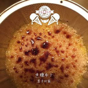 待吃的时候在表面撒少许白沙糖,用喷火枪一烧,可以吃啦!