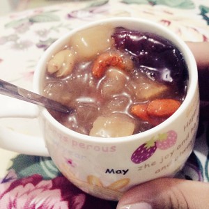 第二天早上起床,睁开眼再把红枣、雪梨块、枸杞子丢进去,喜欢吃甜的再加点冰糖,有糖尿病的加蜂蜜,然后去洗漱,大概20分钟后收拾完自己就可以吃了。