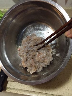 将啲虾剁成虾胶加点调味料调好味