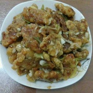 将糖,生抽,米醋,倒在一起,调成调味汁。锅留少许底油,将葱姜蒜入锅爆香,然后将复炸后的肉片入锅,随后倒入调好的调味汁翻炒。待肉片均匀着上调味汁后,倒入调好的水淀粉少许,继续翻炒,待汤汁浓稠时,关火,出锅