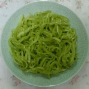 挤去多余水分,尽量挤的干一些,这样吃起来才会脆脆的。最后加少许麻油和四五滴藤椒油,拌匀即可。(每次做凉拌菜我都会放几滴花椒油或者藤椒油,那股麻麻的香味让人食欲倍增。)一盘清新爽脆的凉拌西瓜皮做好了。