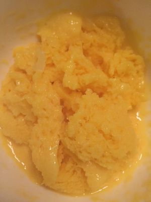 冰冻到完全凝固后,就可取出食用啦!虽然有冰碴子,味道还是不错的,入口浓浓的芒果香,之后在口中融化是浓浓的奶味!快动手试试吧!