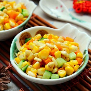 玉米和胡萝卜提前煮一下,放一点点盐,盐能很好带出玉米的清甜来。