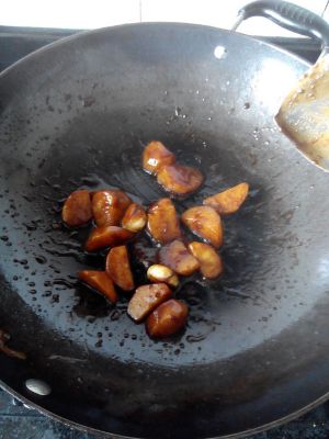 加水焖煮土豆,再加老抽调色。