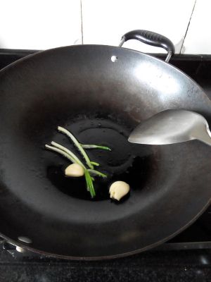 锅烧热下油,炒香葱蒜。