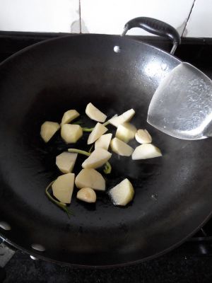 下土豆翻炒。