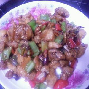 调好口后加入炸好的鸡丁翻炒,炒至鸡丁入味即可(根据口味加入芝麻)