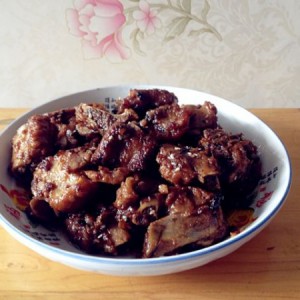 排骨切段洗净后冷水下锅,水沸后倒掉,排骨冷水洗去浮油。