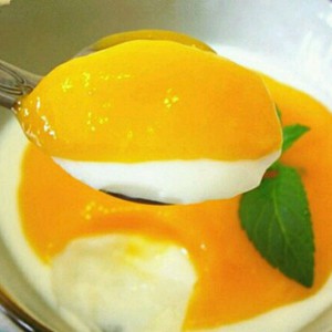 芒果打成泥,浇在放凉的双皮奶上,冷藏后更爽滑哦。