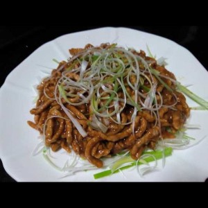 炒好的肉丝倒在上面在上面撒上一把葱丝就可以吃了
