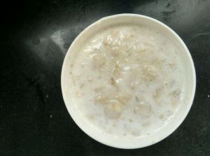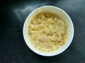 把香蕉放榨汁机中搅碎,用勺子在碗中捣碎也行!