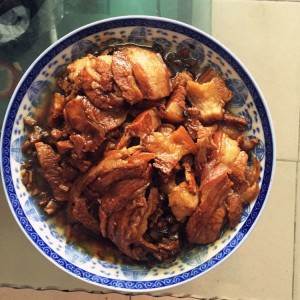 把梅菜倒入扣肉上面,放入高压锅蒸30分钟,再闷30分钟!小心从高压锅里取出碗,然后倒扣在盘子里,大功告成!家人都夸好吃!