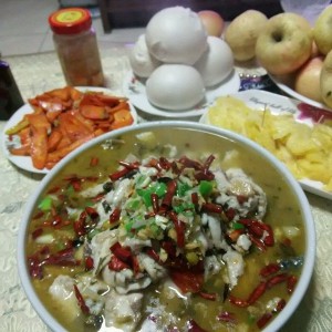 .最后倒入腌制的鱼片,鱼片成白色马上盛出,以免鱼片变老。红辣椒蒜末胡椒葱花撒撒上,起锅热油浇在辣椒上这个酸菜鱼就完成