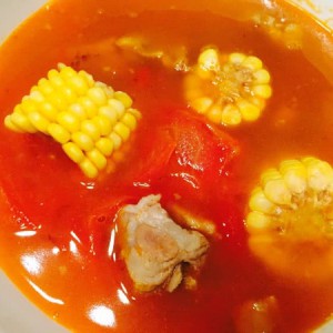 锅中加入适量油,将煮好的排骨捞出,汤放一边。下排骨,同时加入番茄酱与排骨一起翻炒。之后再加入番茄炒一下。加入刚才的排骨汤,将切好的玉米放进锅一起煮。我一般炖得比较久,将番茄的味儿释放出来。