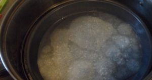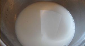 蒸3-5分钟鼓起大泡泡后,连同披萨盘在凉水里过一下,揭下凉皮,放在平盘里,上面抹层玉米油